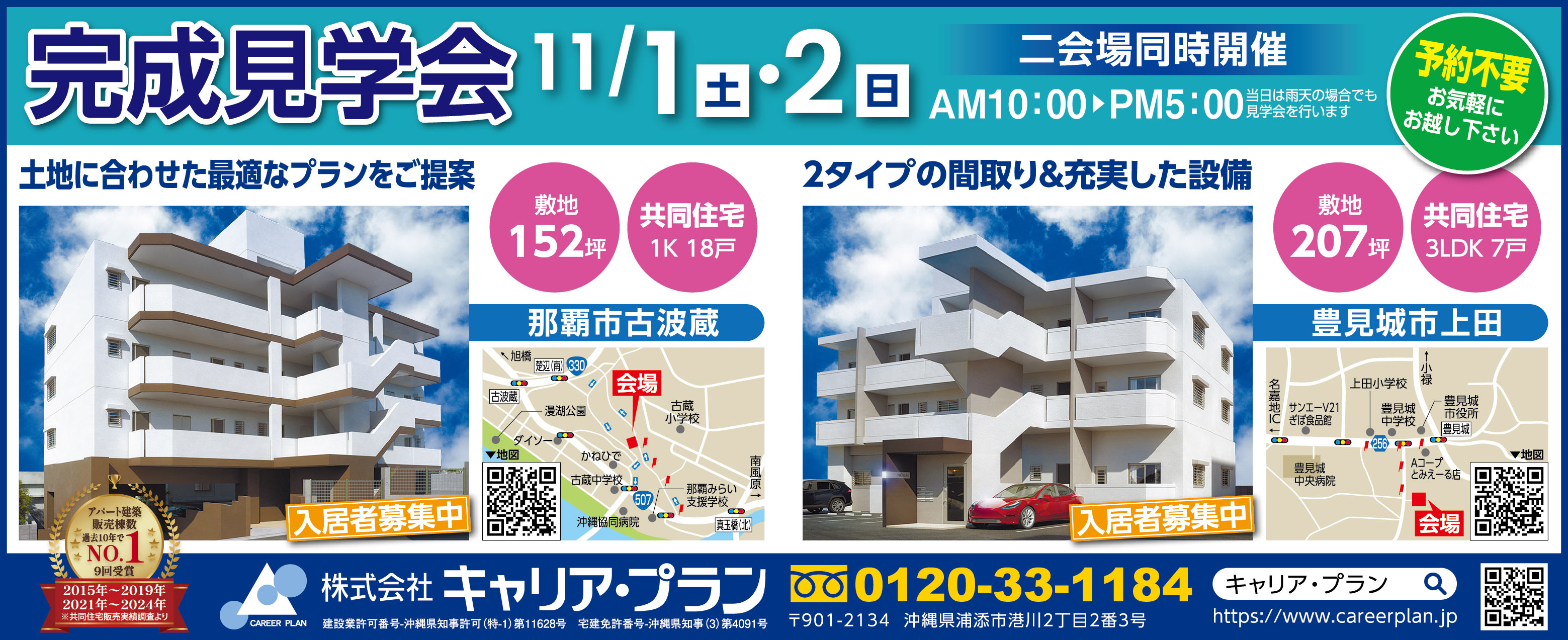 NEW 11/1(土)~11/2(日)にキャリアプランが豊見城市上田で完成見学会を開催 キャリアエステート 完成見学会 開催情報 日程 11/2(土)~11/3(日) 時間 10:00~17:00 開催場所 豊見城市上田 備考 予約不要 お電話でのお問い合わせ 主催者・お問い合わせ 会社 株式会社 キャリア・プラン TEL 0120-33-1184