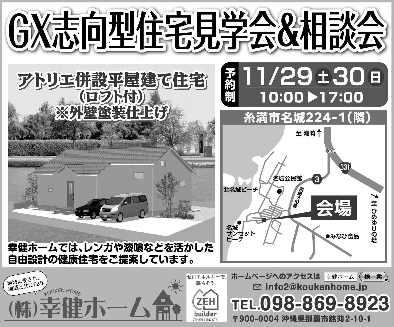 • 11/29(土)~11/30(日)に幸建ホームが糸満市で住宅見学会&相談会を開催