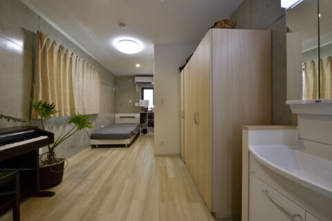 「設計を担当してくれた外間由高さんから、フロアごとに住まいの機能を分配したプランを提案されました」と、Tさんが屋内を案内してくれました。