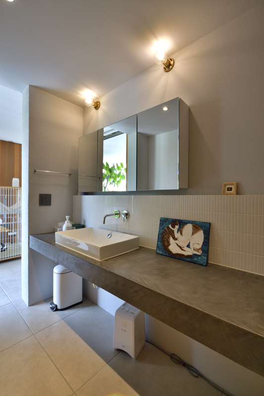 「建築士さんの作風が以前から気に入っており、木とコンクリートに包まれたような雰囲気の家にしたいと考えていました。間取りもおよそ私たちには想像できないプランを提案してもらい、一目で気に入りました」とご夫妻は振り返ります。